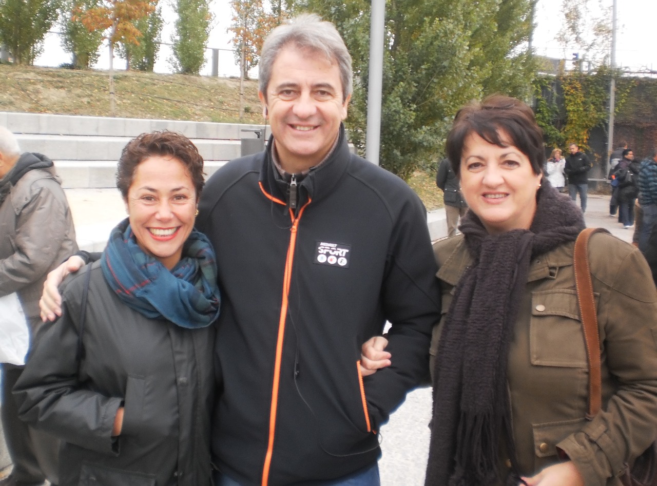 El periodista Manolo Lama (COPE y CUATRO) con Sole y Carolina (MADRID RIO TV) antes del encuentro